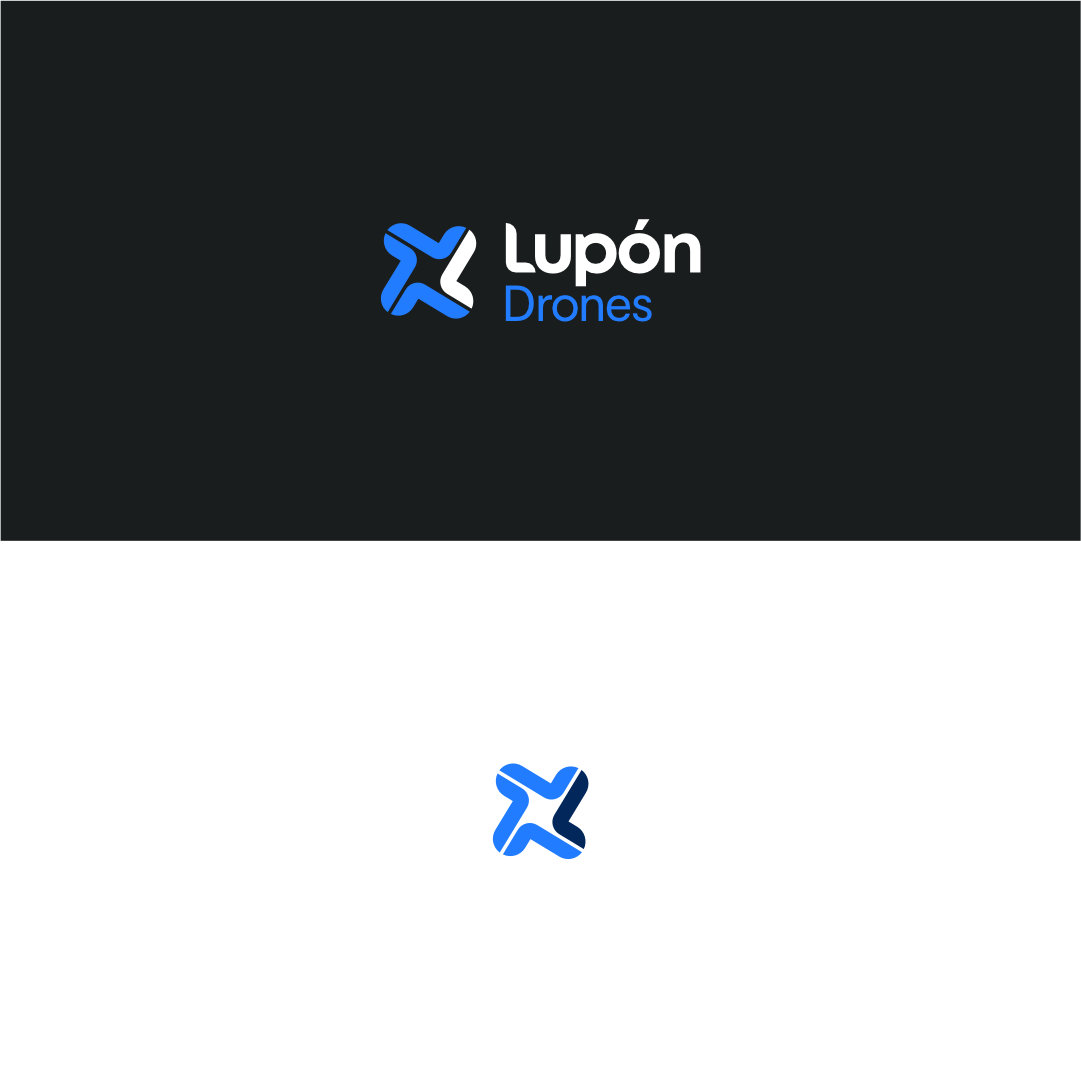 Para el logotipo, tomamos la inicial «L» de su nombre y apellido como base, transformándola en un símbolo que evoca la vista superior de un dron. La identidad visual utiliza dos tonos de azul: uno vibrante y otro oscuro, que aportan profesionalismo y versatilidad a todas las aplicaciones.