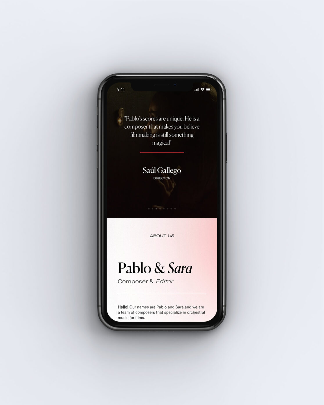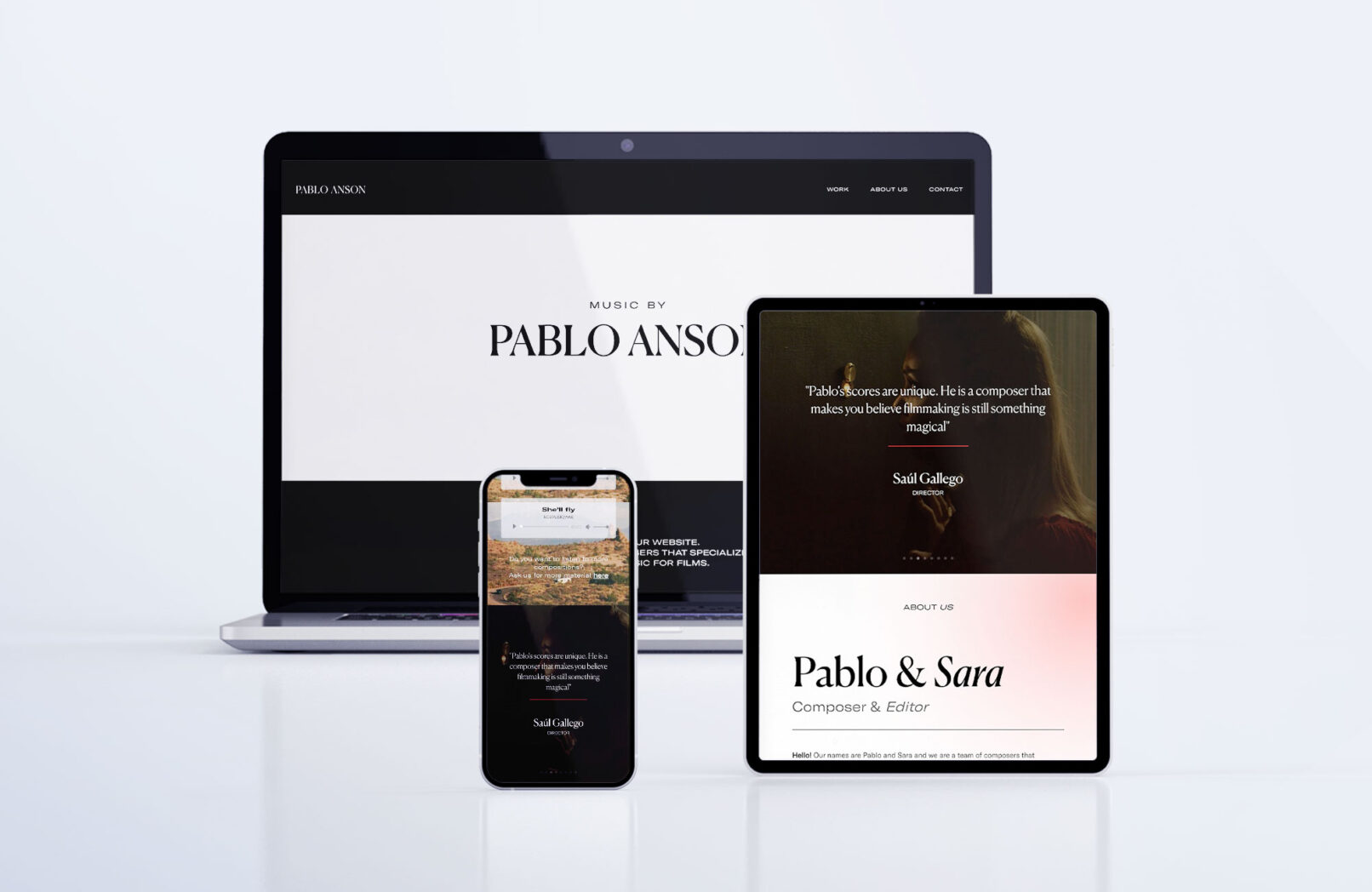 Diseño y maquetación web one page para Pablo Ansón, un equipo especializado en producción de música de orquesta para cine.